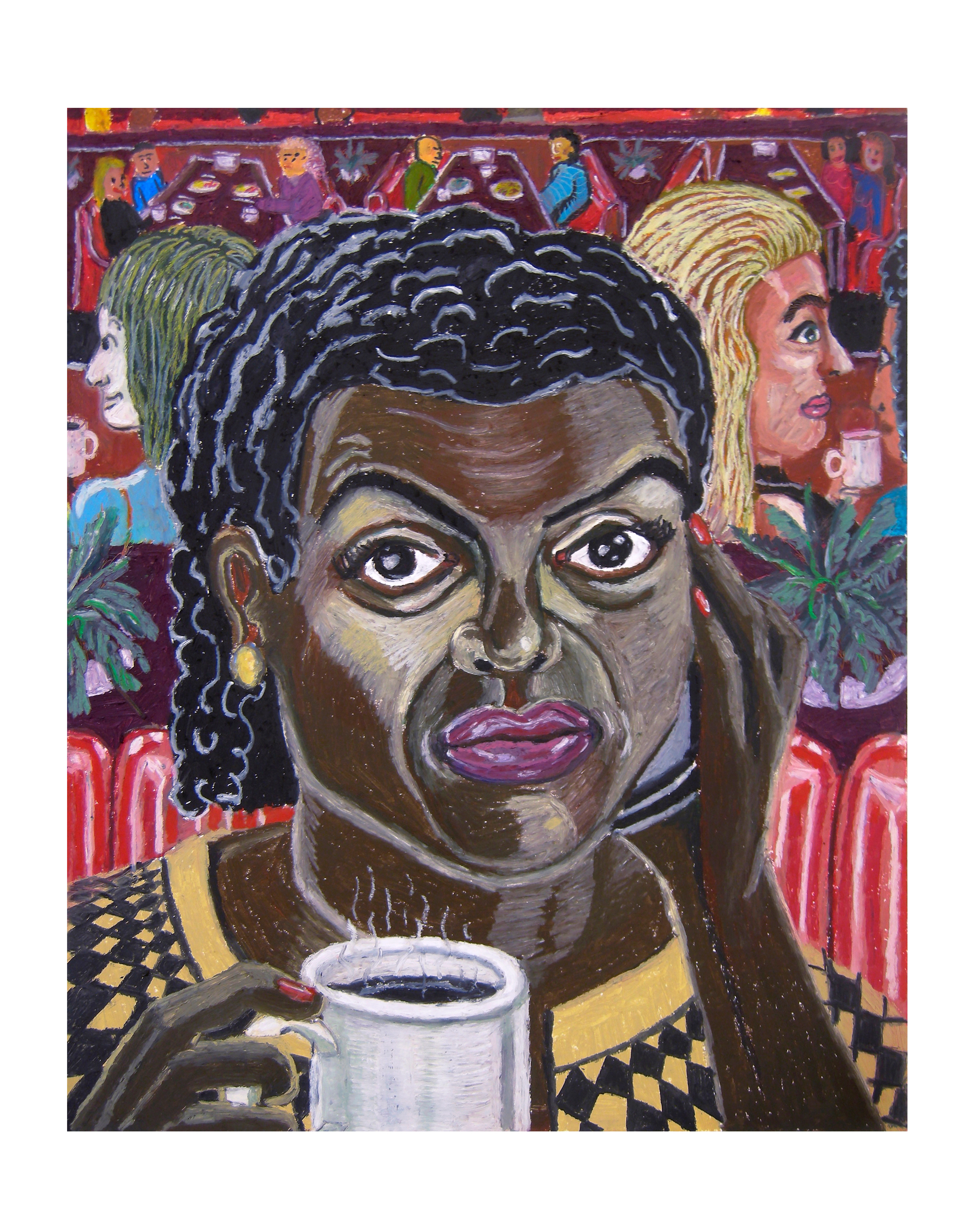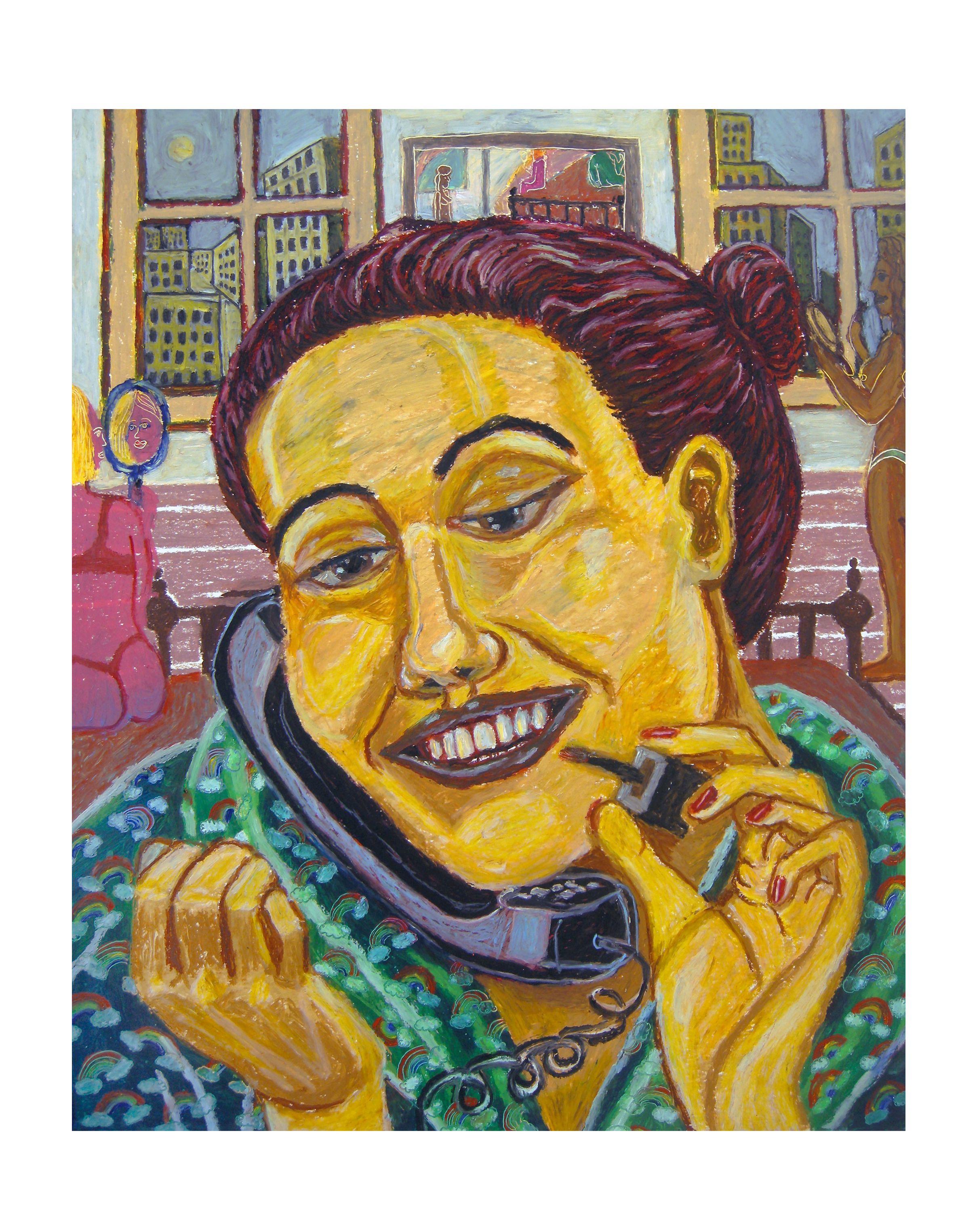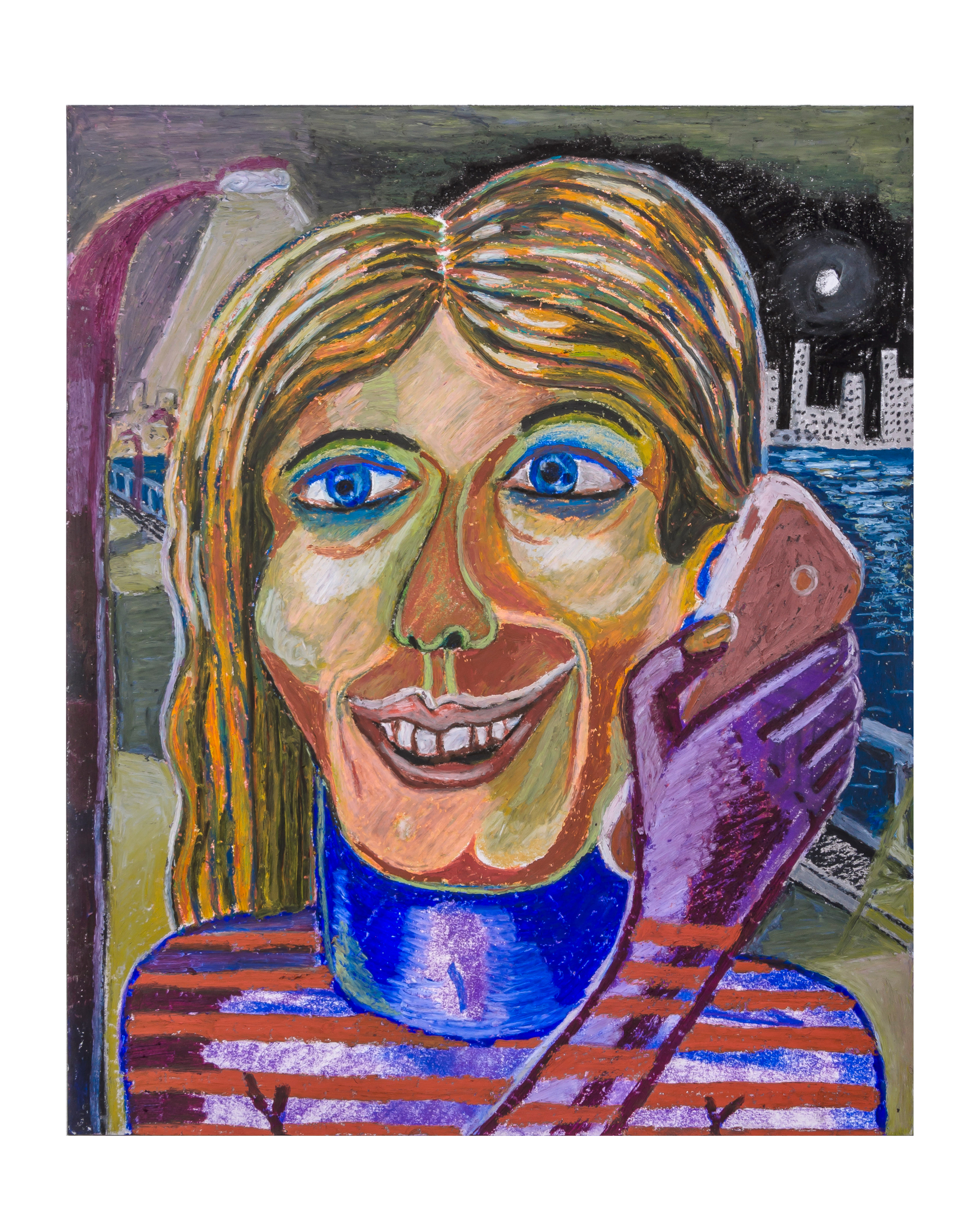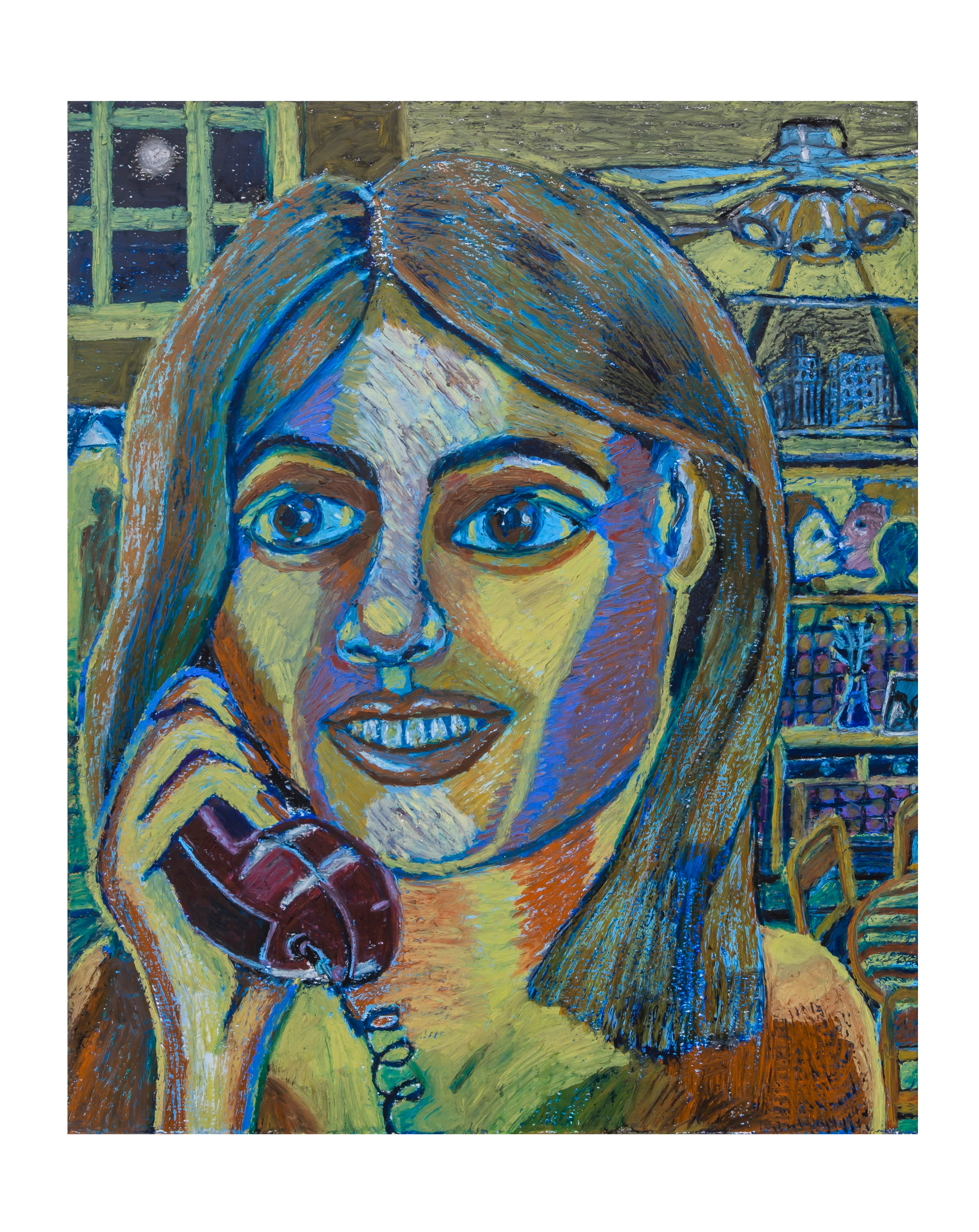 Kim Texting in the Club // Oil pastel on paper // 11 x 17 inches // $950.00 Steph Says "Totally" // Oil pastel on paper  //  11 x 17 inches  //  $950.00 `Miranda Says "Mhmm" // Oil pastel on paper // 11 x 17 inches // $950.00
